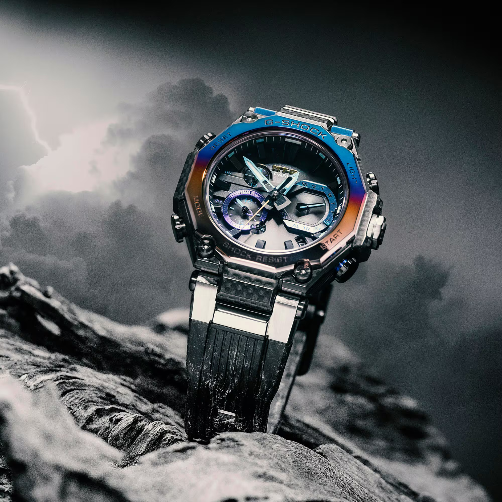 Entdecken Sie die beeindruckende Form und coole Struktur der CASIO MT-G Uhren – jetzt in der exklusiven MTG-B2000YST-1AER Edition. Diese Uhr vereint Metallmaterialien mit dem strapazierfähigen Resin, das in den frühen G‑SHOCK Modellen verwendet wurde. Inspiriert von den furchtlosen Sturmjägern, die sich direkt in extreme Wetterphänomene wie Tornados und Gewitterzellen stürzen, verkörpert diese Uhr den Geist von Abenteuer und Innovation.
