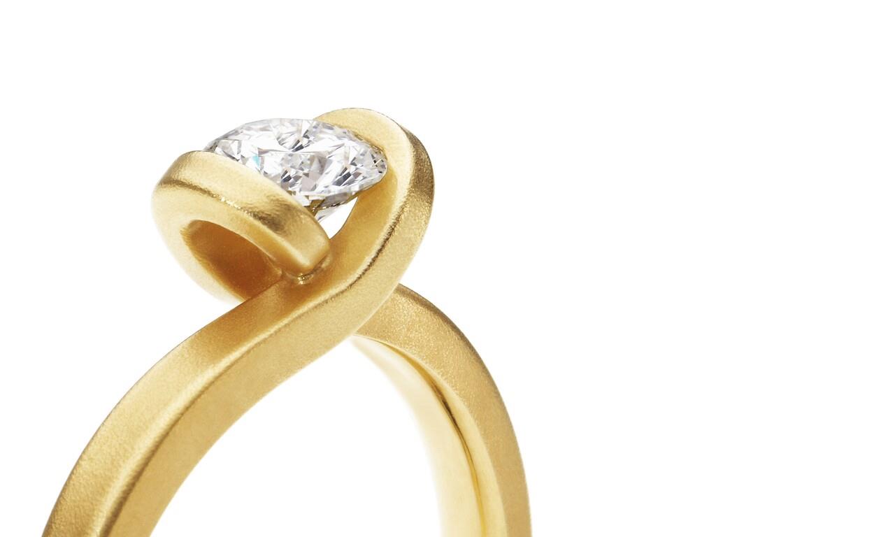 Der Solitär Ring aus der renommierten Goldstadt Pforzheim, hergestellt von Oliver Schmidt, besticht durch sein elegantes und harmonisches Design. Ring und Fassung bilden ein fließendes Band, in das der Brillant nahtlos eingebettet scheint. Die sorgfältige Abstimmung von Bändern und Brillanten sorgt für ein feines Spiel der Proportionen. Dieser Solitär Ring lässt sich perfekt mit Ringen aus der Serie "Endloses Band" kombinieren, was ihn zu einem vielseitigen Schmuckstück für jede Gelegenheit macht.